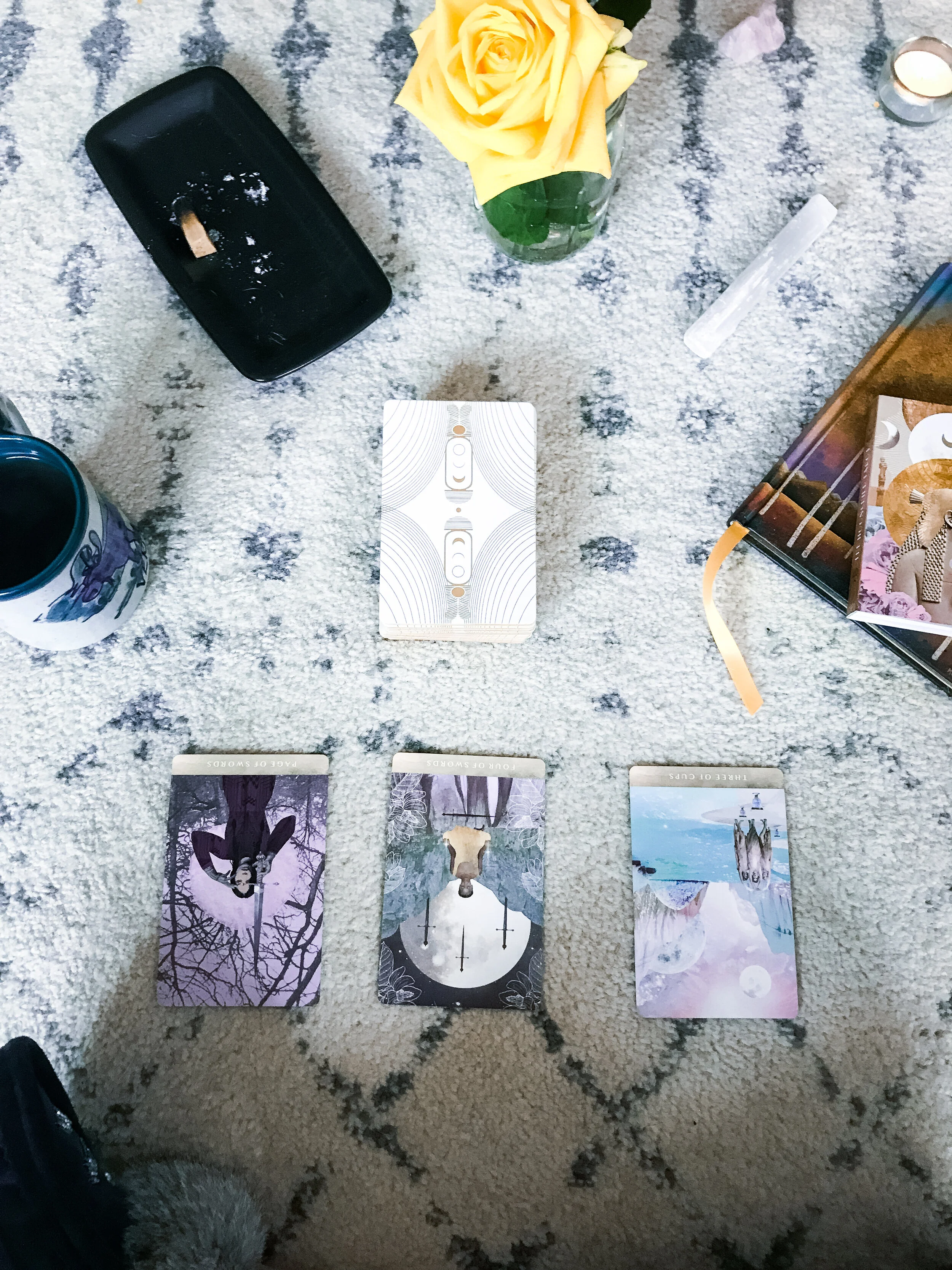 I invite everyone to choose a few cards from my Oracle or Tarot decks. You can write down anything you notice about the cards, whether it’s imagery that stands out to you, a feeling you get when you look at the card, any similarities or patterns that stand out between the cards.